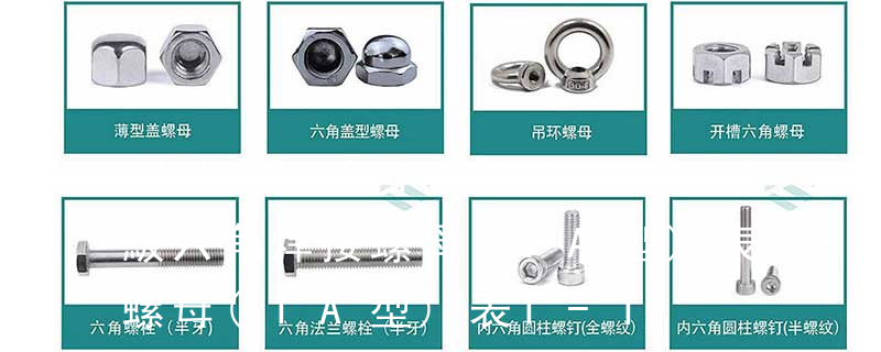 1型六角開槽螺母-A和B級GB 6178-86 1型六角開槽螺母-C級GB 6179-86 2型六角開槽螺母-A和B級GB 6180-86 六角開槽薄螺母-A和B級GB 6181-86 2型非金屬嵌件六角鎖緊螺母GB /T 6182-2000 非金屬嵌件六角法蘭面鎖緊 螺母依據屬性主要有國標(GB)、德標(DIN)、國際標準(ISO)、日標(JIS)、美標(ASTM/ANSI)等標準。其中、國標、德標、日標用M表示(例如M8、M16),美制、英制則用分數或#表示規格(如8#、10#、1/4、3/8)。
